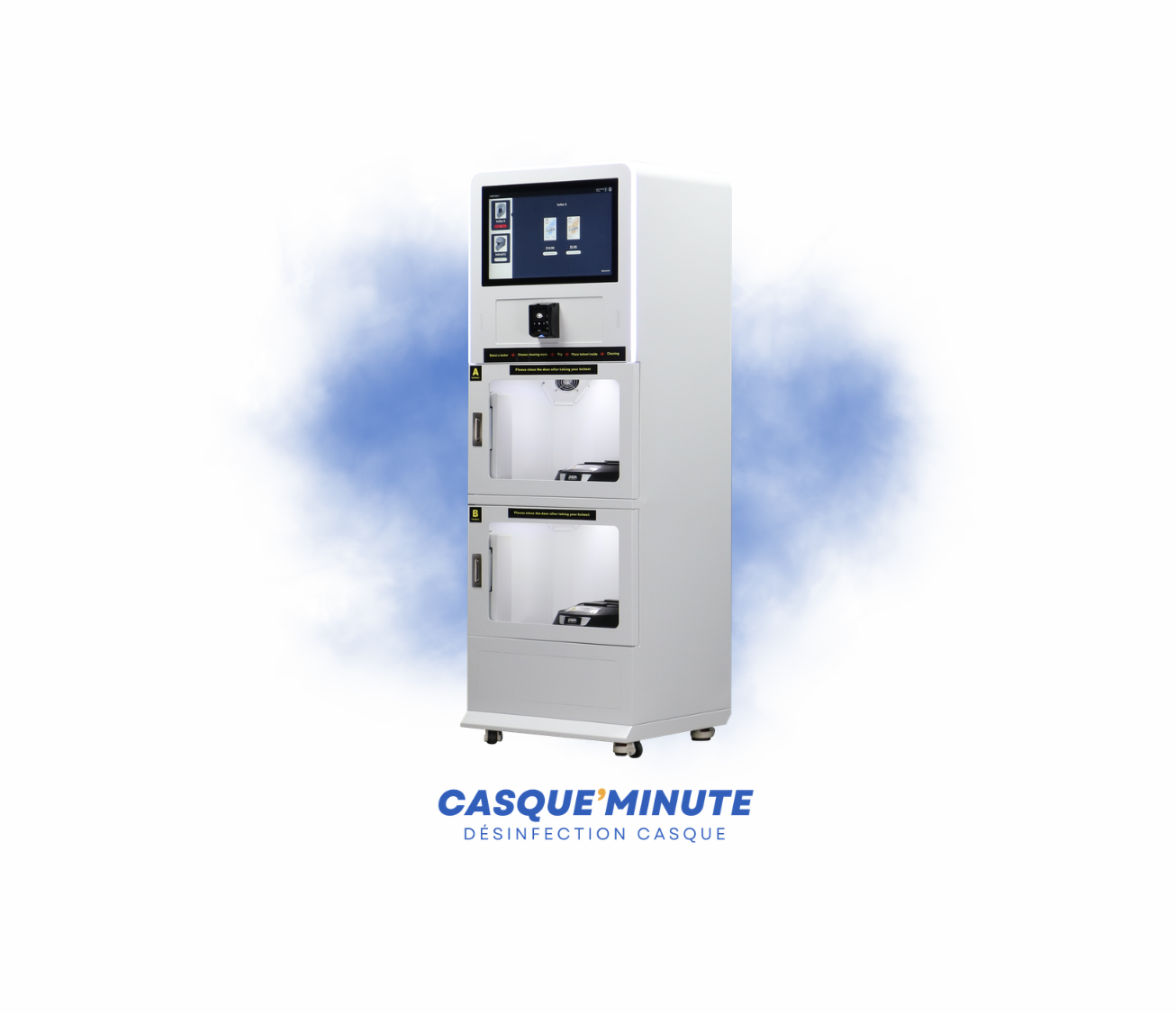 Oui, la borne verrouille votre casque pendant le cycle et utilise un système anti-choc pour éviter tout dommage. Une fois le processus terminé, la porte s'ouvre automatiquement.