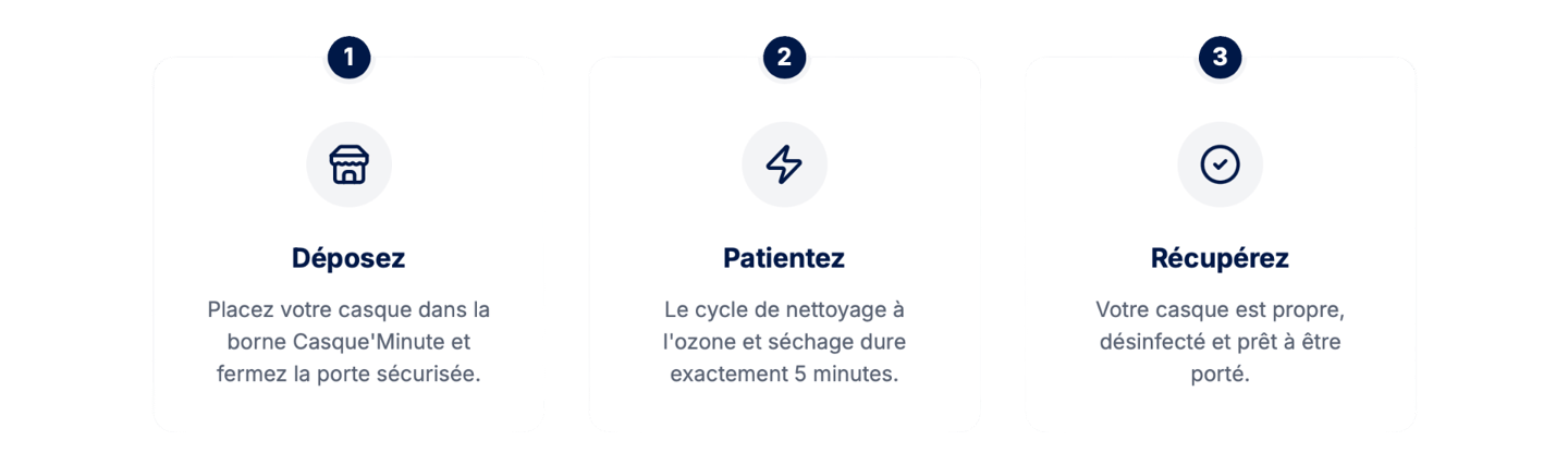 Faites nous confiance en accueillant une borne Casque'Minute dans votre établissement. Aucun investissement requis.